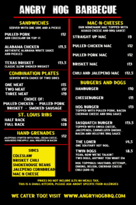 Angry Hog BBQ Menu Submit a Comment Cancel replyYour email address will not be published. Required fields are marked *Comment * Name * Email * Website Δ