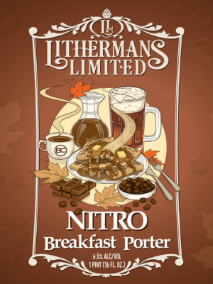NITRO Breakfast Porter is the first of its kind at Lithermans. Cold steeped on cacao nibs and heaps of Concord’s own Brothers’ Cortado cold brew coffee. This beer includes notes of chocolate, toffee, coffee, as well as real maple syrup. This delightful brew boasts a soft creamy head, with a sweet velvet body.